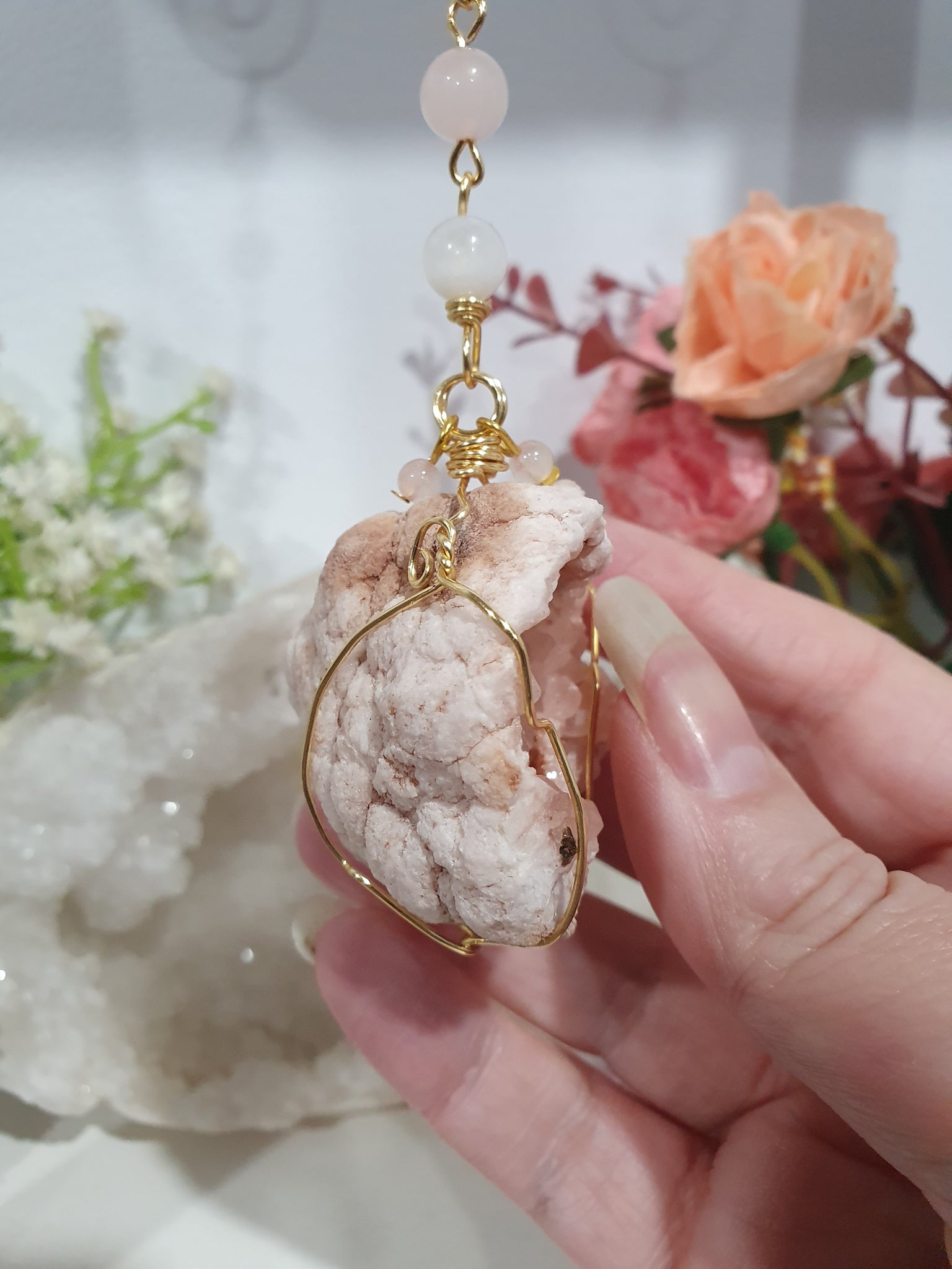 Gorgeous Pink Amethyst geode beaded with Rose Quartz & Moonstone. wired in Gold