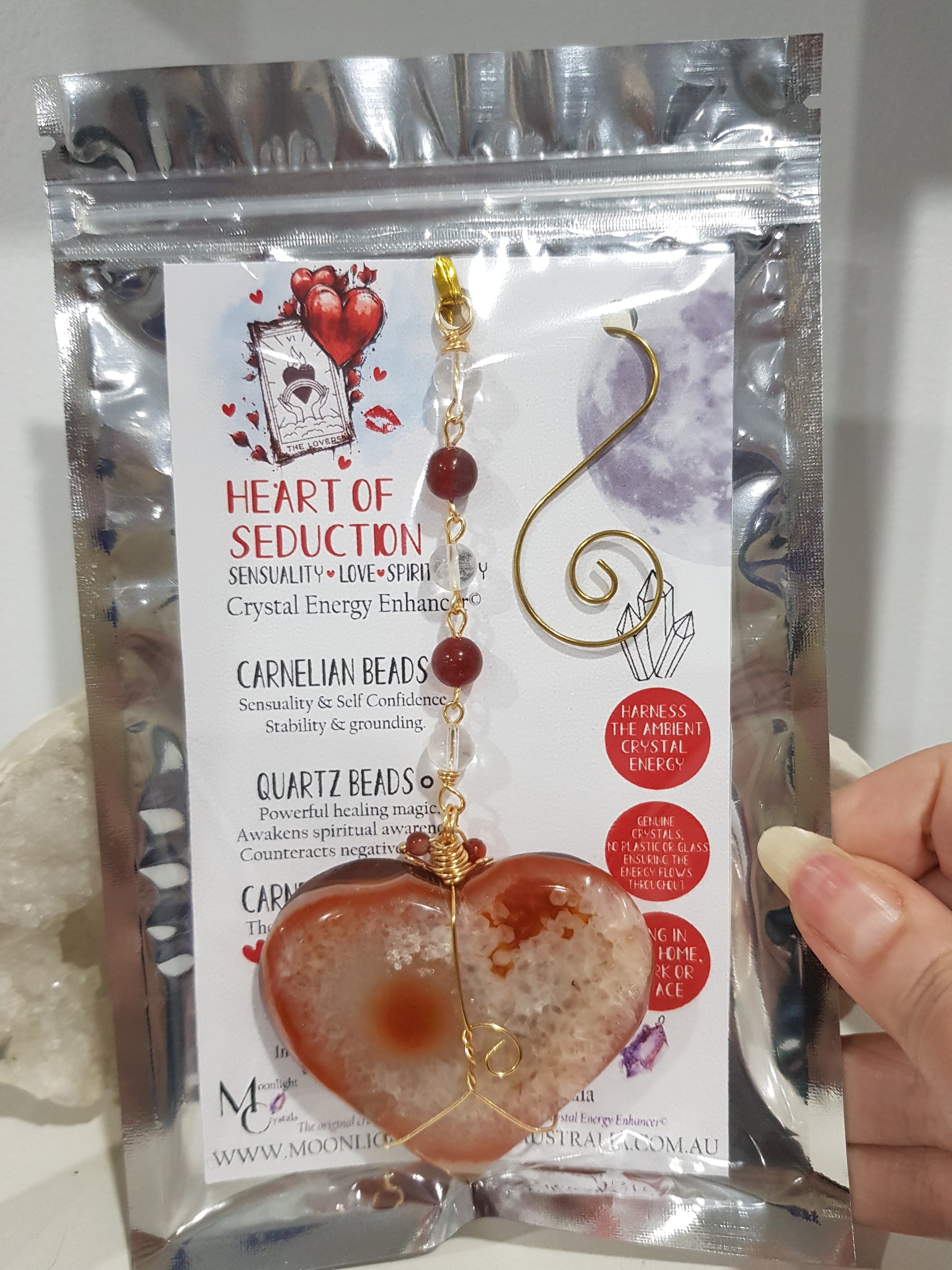 HEART OF SEDUCTION - SENSUALITY | LOVE | SPIRITUALITY - Carnelian Heart Gold Wired Stone Crystal Energy Enhancer© / Hanger / Sun Catcher