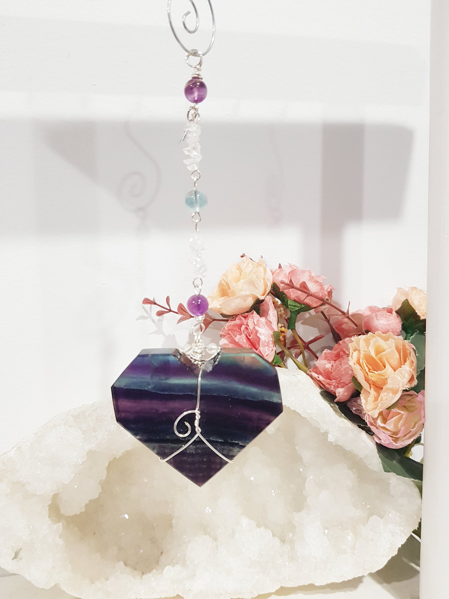 THE HEART OF CLARITY - Fluorite Heart Silver Wired Stone Crystal Energy Enhancer© / Hanger / Ornament / Sun catcher