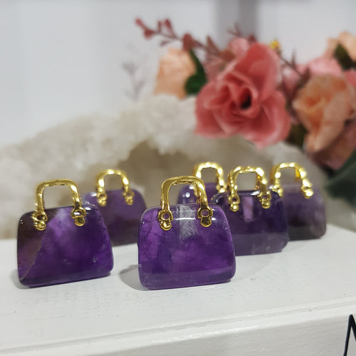 Handbag Amethyst Crystal Carving Stone gold handle 20mm hand bag