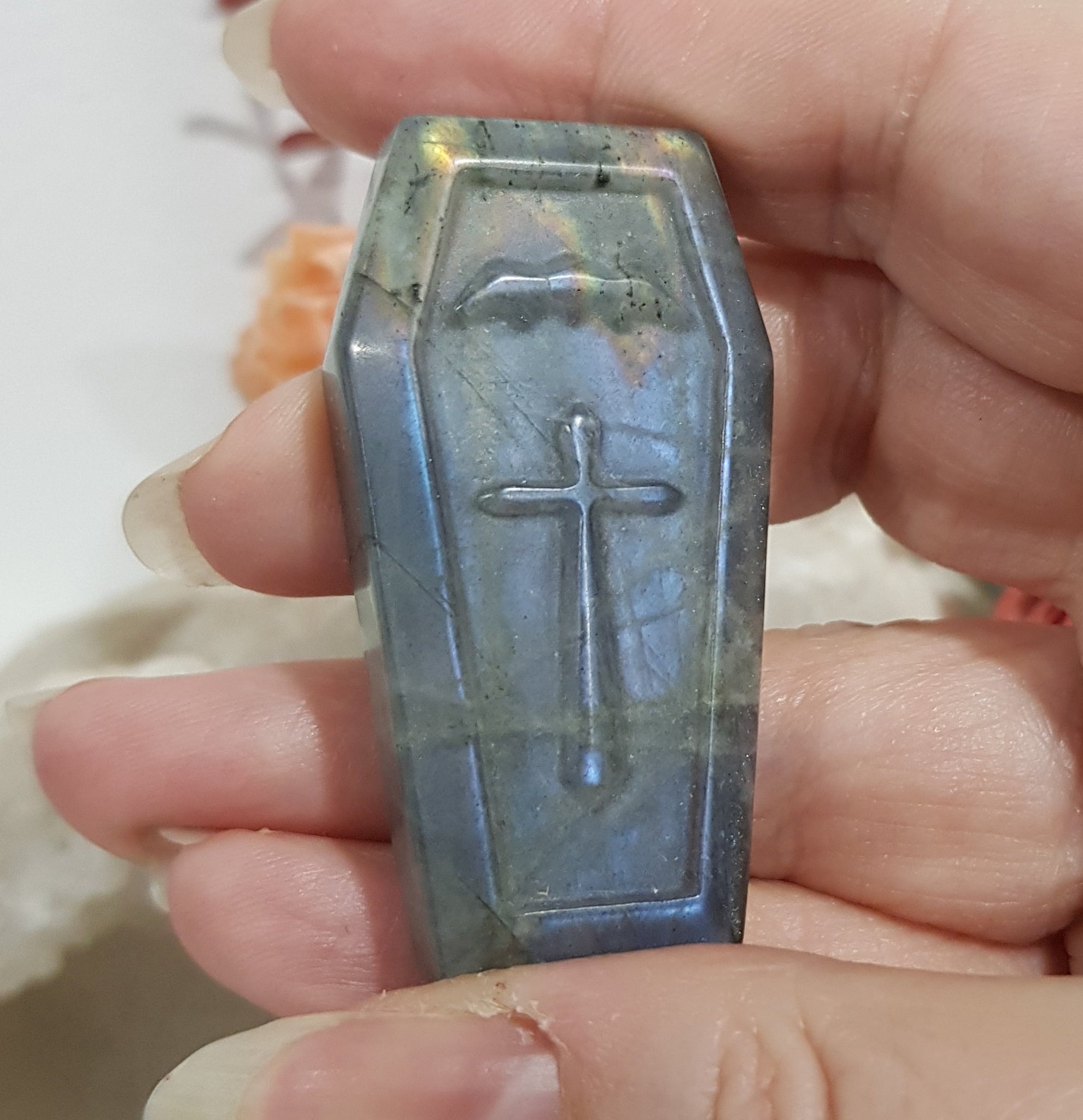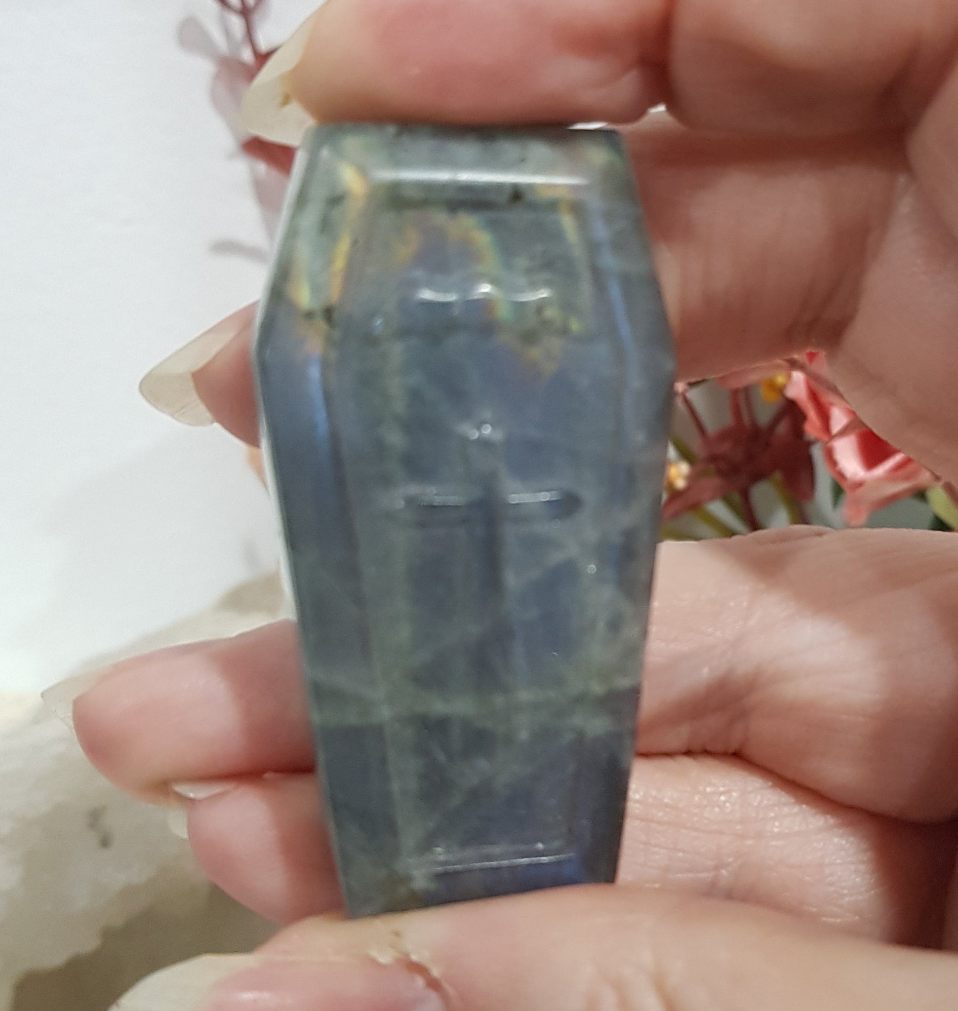 Labradorite COFFIN Crystal Carving.