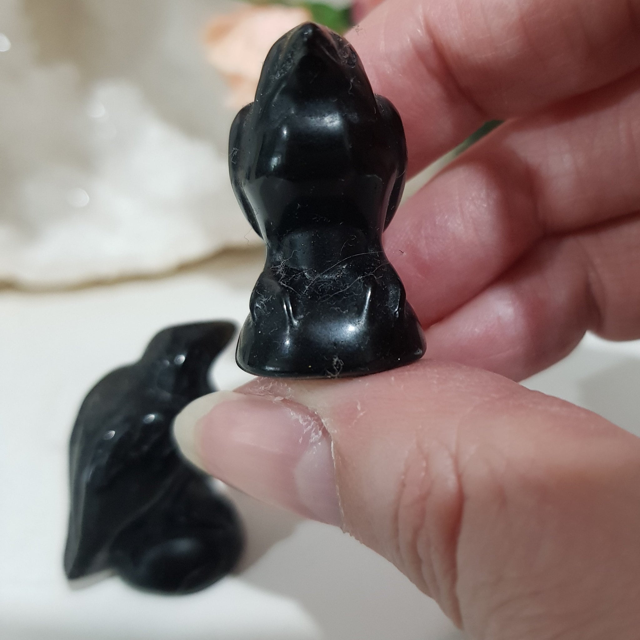 Black Obsidian Raven Crow Animal Crystal Carving Stone