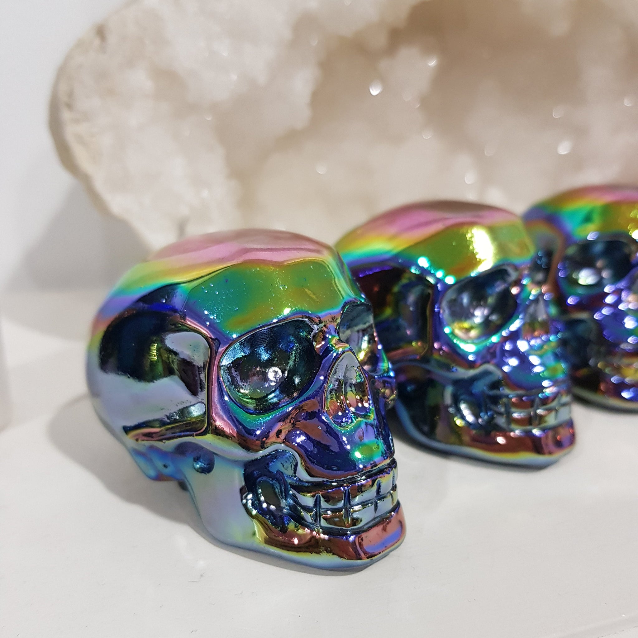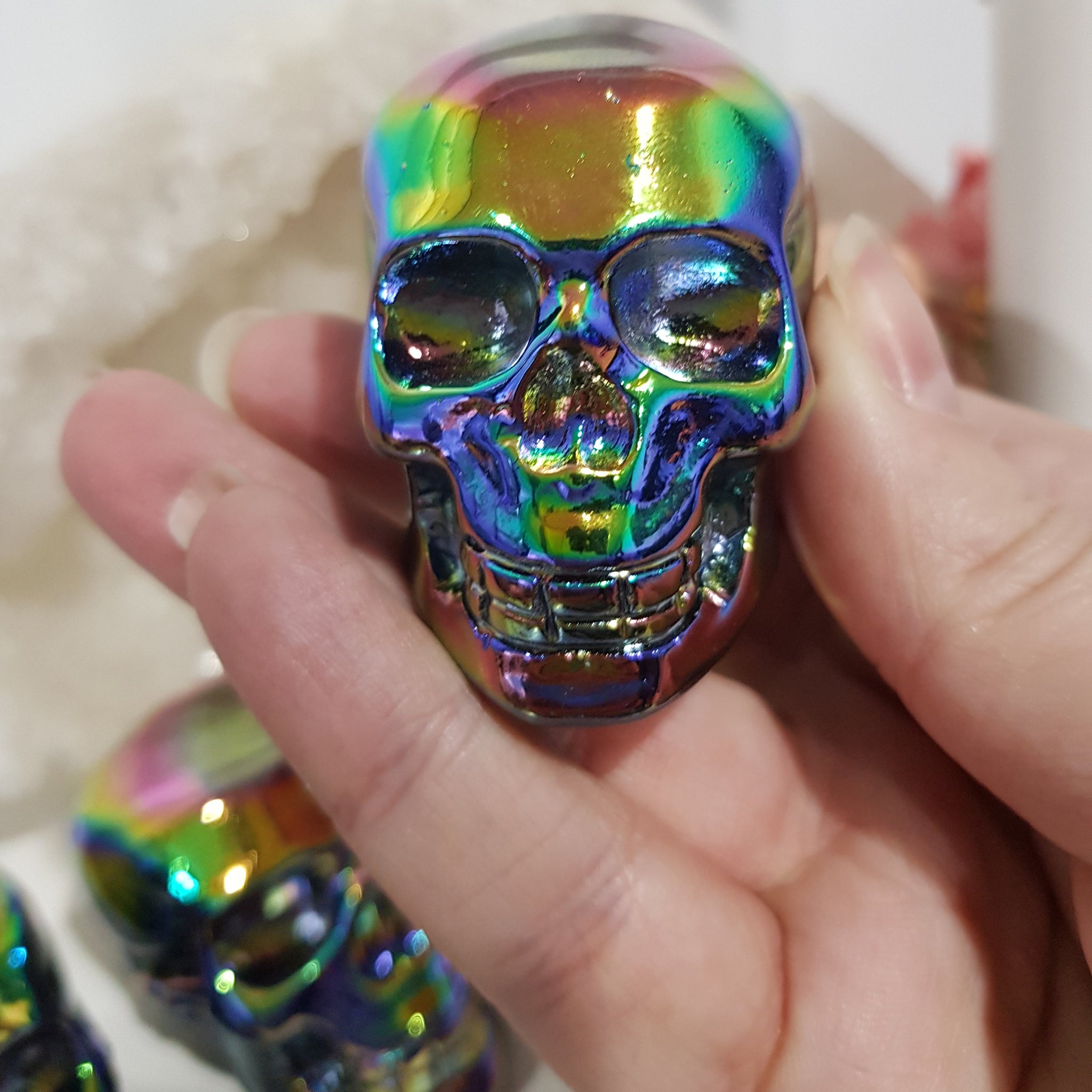 Titanium Aura Obsidian Skull Crystal Carving