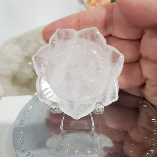 Lotus Flower Quartz Crystal Carving on Stand Stone 55mm 1