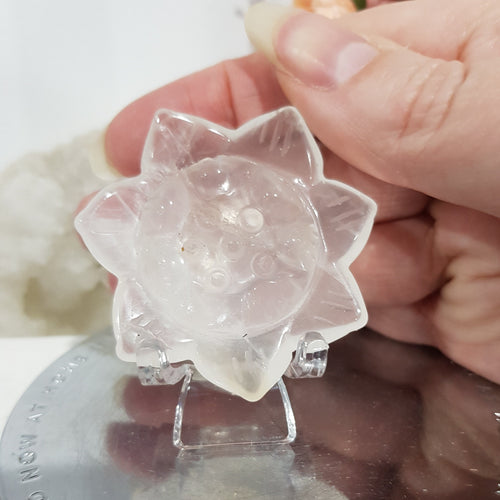 Lotus Flower Quartz Crystal Carving on Stand Stone 50mm 2
