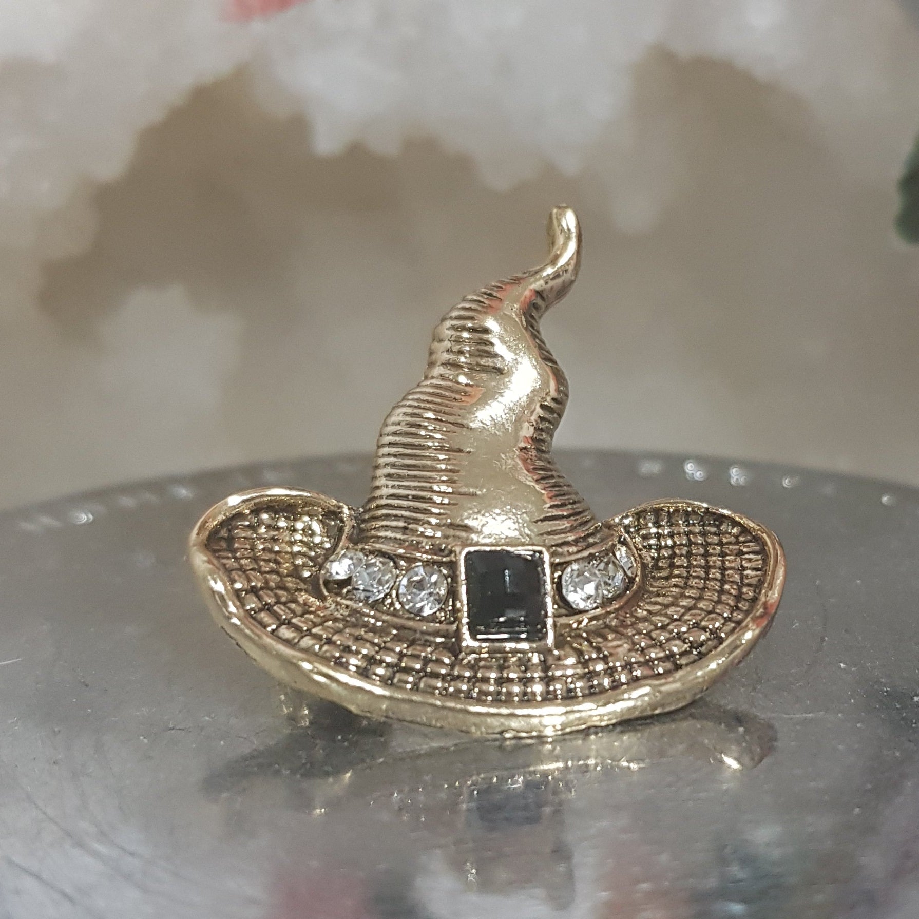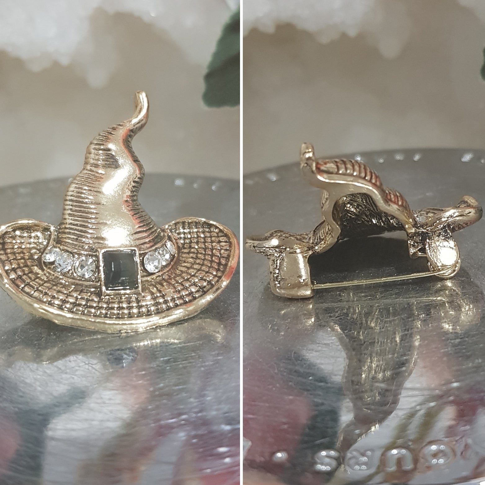 BROOCH WITCHES HAT gold metal 30mm CUTE FUN faux stone